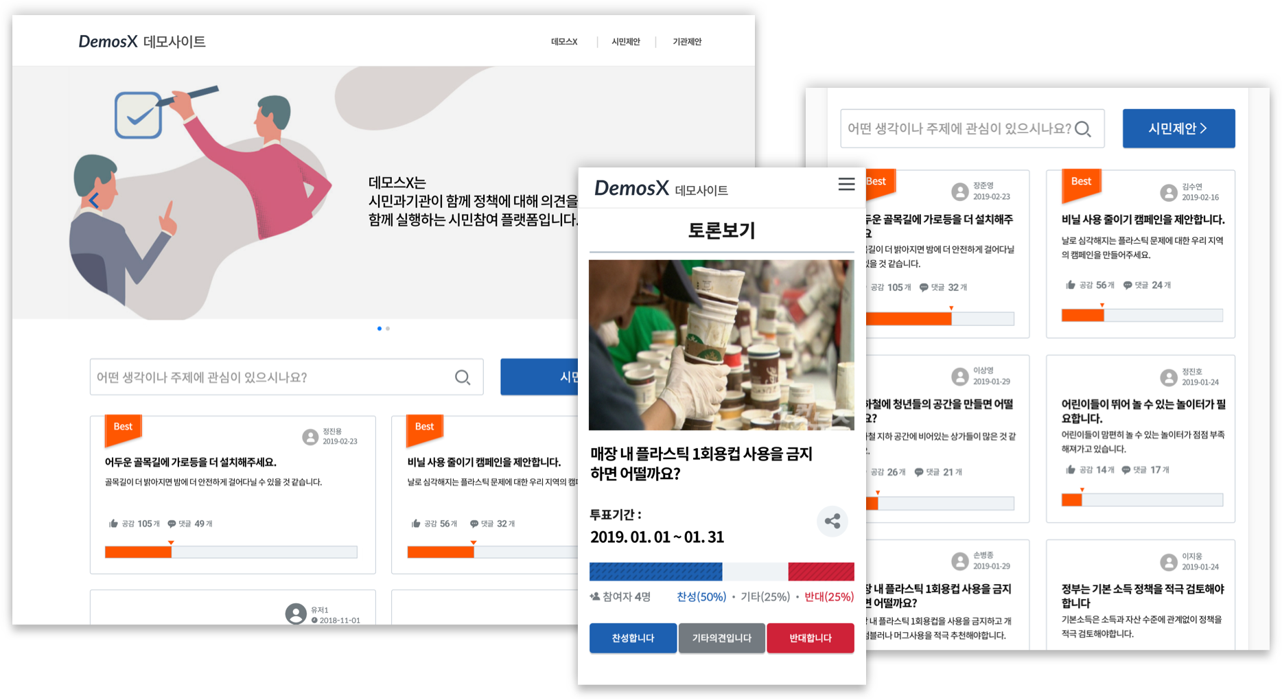 시민이 누구나 제안부터 투표, 토론까지 쉽고 빠르게 참여할 수 있습니다.